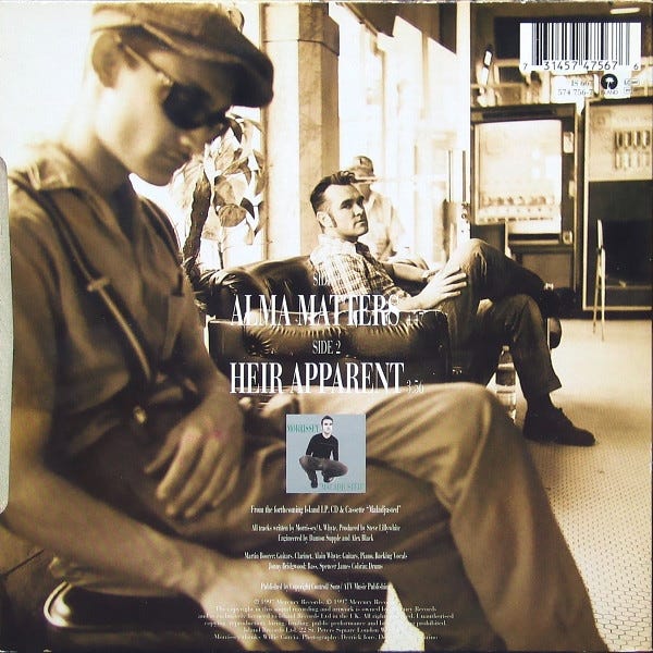 'Alma Matters' was the first single from Morrissey’s sixth studio album, Maladjusted, and his 24th single overall. It was released July 21, 1997 and reached number 16 on the UK Singles Chart.