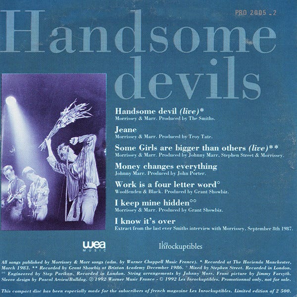The song also appears on the May 1995 release of the Smiths’ 'Sweet And Tender Hooligan' single (as A2)