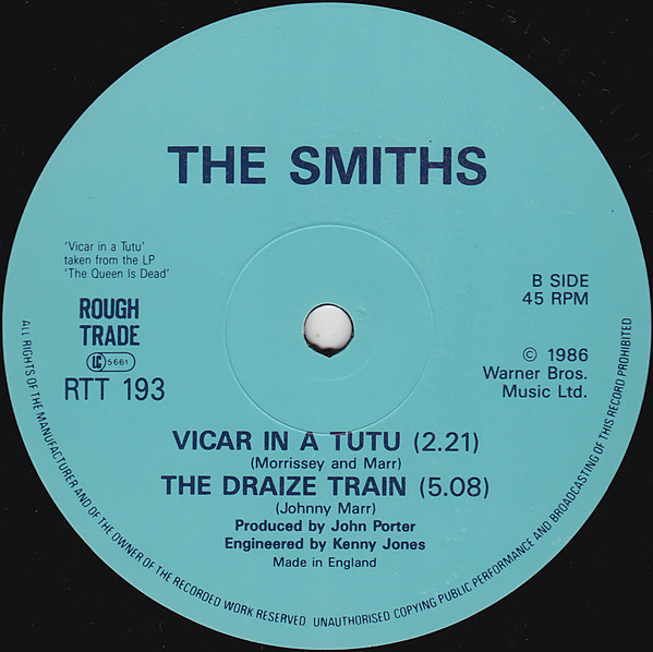 On July 21, 1986, “The Draize Train” was released as a B-side to the 12-inch edition of the Smiths’ fourteenth single, “Panic.” The single reached number 11 on the UK Singles Chart.